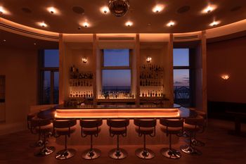 Located on the 64th floor of 70 Pine Street–one floor above Saga–Overstory is a contemporary cocktail bar surrounded by a wraparound terrace with 360-degree views of the New York City skyline.